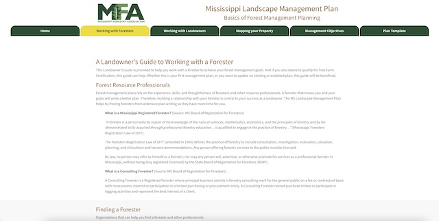 Written management plans are required for various cost-share programs offered by the state or federal government. They are also required for Tree Farm certification. A Tree Farm plan contains the most detailed information and is suitable for cost-share, so the Mississippi Landscape Management Plan was developed to meet Tree Farm Standards. Once your plan is completed, entry into the Tree Farm program is just an inspection away.